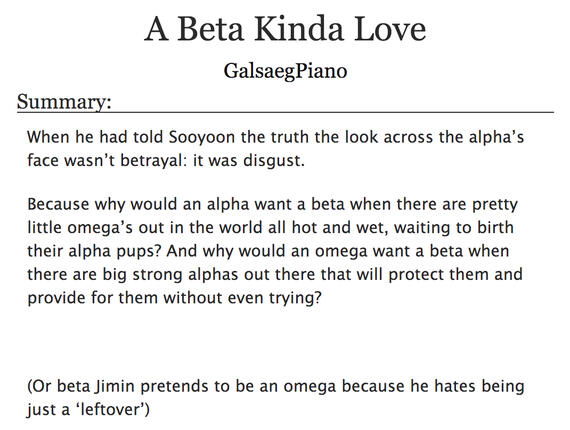 #A/B/O #SelfEsteemIssues #BetaJimin #AlphaYoongi #Angst #Insecurity #Smut #Fluff