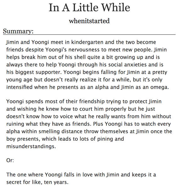 #A/B/O #AlphaYoongi #OmegaJimin #FriendsToLovers #Angst #Smut #SlowBurn #Mating #Mpreg #ChildhoodFriends